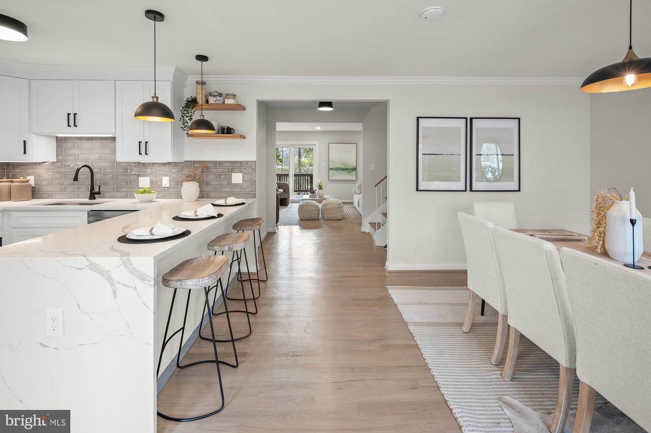 Your refuge from the city – this is the retreat you’ve been waiting for. Welcome to this beautifully renovated 3-level townhouse in the sought-after Coleson Cluster where homes are set within a natural landscape and connected by a network of paths running throughout the neighborhood. As you enter, floor-to-celing windows bring in natural light across the main level drawing you towards fully renovated kitchen with white shaker cabinetry, quartz countertops and modern backspash. A large waterfall peninsula creates a natural place to gather whether for a quick morning coffee or a full evening with people around it. Down the short hallway, the space opens up into a large family room where the natural light floods the space. Here, a fireplace creates a perfect space where you can relax and unwind, or pull down a book from the built-in shelves framing the fire place. A large window framing the surrounding trees and the sliding door opening onto the deck. Upstairs, the primary suite offers a calm private space with a spacious bedroom, fully renovated spa-inspired baths and a walk-in closet. Two additional spacious bedrooms and a full bath complete this level. The lower walk-out level adds another level of usable space. A large room with a closet can function as a guest bedroom, a private office or a secondary family room with the doors opening to a large patio. This neighborhood is ideally situated just a short distance from Lake Anne Plaza, where weekends naturally start — coffee in hand, walking through the farmers market, running into neighbors, deciding where to sit for breakfast or lunch. The Reston Museum, small local shops, and restaurants are all right there. Living here also means having access to the full range of Reston Association Amenities, including: 15 pools, 55+ miles of walking & biking trails, 4 beautiful lakes, 50+ tennis courts, and more (Reston Association Brochure with detailed information is available through MLS documents). In addition: Hidden Creek Country Club is aprx. 0.5 mile away; Reston Town Center with with restaurants, shops summer concerts or ice skatin in the winter is aprx. 1 mile away; Reston Station Plaza and Metro Station is aprx. 2.3 miles away; Reston National Golf Course is aprx. 2 miles away. Getting around is easy — two Silver Line Metro stations nearby, quick access to Dulles Airport, Washington, D. C. , and the major highways. List of Upgrades: new kitchen cabinets, new appliances, new countertops, refinished hardwood floors, new window, new baths vanities, countertops and plumbing fixtures. New LVP flooring in the lower level, and more… This property comes with covered CARPORT. Full list of updates and features is available through MLS Documents.
